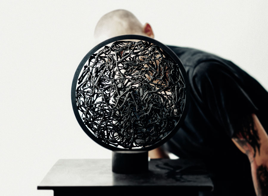 Working with found objects and raw materials, such as iron,